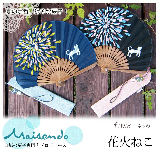 扇子 女性 レディース かわいい 和装小物 京都 うちわ 浴衣 舞扇堂扇子fuwa 扇子 袋 セット 花火ねこ ネイビー R25223-82 コンパクト お出かけ グッズ 涼しい せんす 涼感 可愛い オシャレ お洒落 収納 シンプル 通勤 通学 女子 男子 女性 男性 女の子 男の子 レディース メ