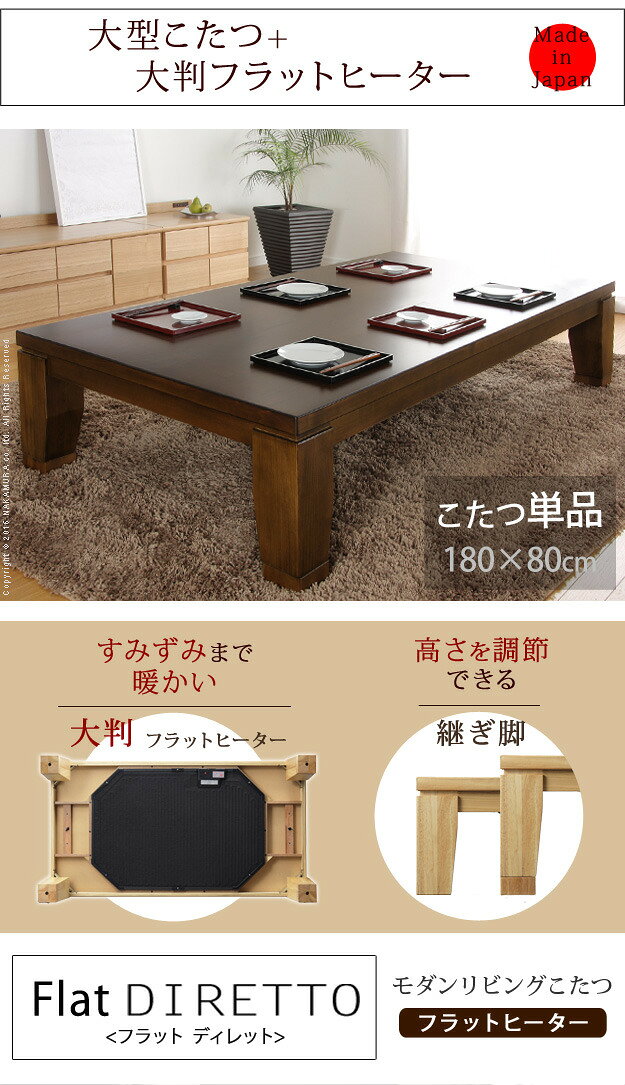 こたつ テーブル 長方形 大判サイズ 継脚付きフラットヒーター 〔フラットディレット〕 180x80cm 国産 高さ調節 継ぎ脚 ローテーブル 炬燵 コタツ 木製 家具調 mu-11100412 送料無料 北欧 モダン 家具 インテリア ナチュラル テイスト 新生活 オススメ おしゃれ 後払