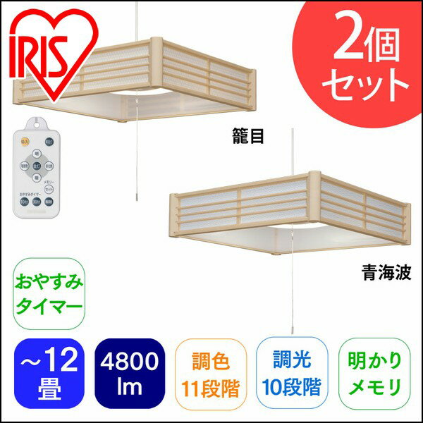 ●商品サイズ(cm)幅約48×奥行約48×高さ約16.2※シェードと光源を組み合わせたサイズ●商品重量約2.3kg●適用畳数12畳用●定格電圧AC100V(50/60Hz)●定格消費電力約45W●光色電球色〜昼光色相当●器具光束4800lm●演色性Ra80●設計寿命40000時間●機能調光:10段階調色:11段階常夜灯:○プルスイッチ:○リモコン:○ (検索用:LEDペンダントライト・LEDライト・ペンダントライト・LED照明・LED・照明・和風・和室・和モダン・和風ライト・おしゃれ・省エネ・節電・調光・リモコン・4967576396356・4967576396387・アイリスオーヤマ)★